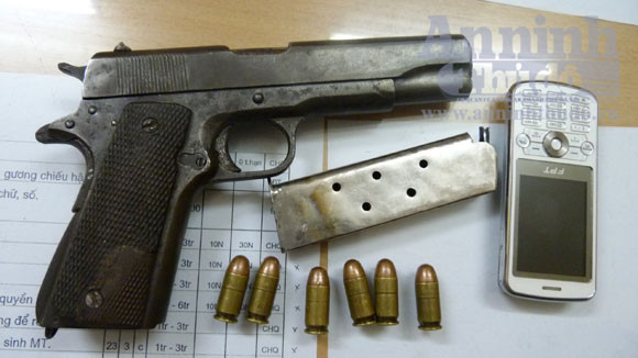 Vào thời điểm trên, tổ công tác phát hiện dưới chân nam thanh niên đang ngồi trên xe có 1 khẩu súng quân dụng dạng K54 (có ký hiệu UNTED STATTES – PROPERTY USA – ARMY – No: 23/9839), 1 hộp tiếp đạn gồm 6 viên trong đó có 1 viên đã lên nòng. Cùng với việc làm rõ đối tượng liên quan là Nguyễn Anh Tuấn (SN 1975, đăng ký HKTT tại số 19 phố Võng Thị, phường Bưởi, quận Tây Hồ, có 3 tiền án về tội trộm cắp), tổ tuần tra CSCĐ đã bàn giao đối tượng, tang vật cho CAP Láng Hạ (Đống Đa, TP Hà Nội) điều tra, xử lý.