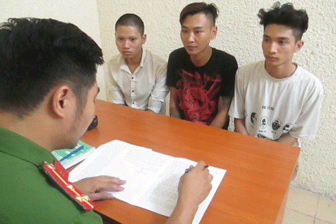 Các đối tượng Nguyễn Tuấn Anh, Vũ Quang Hiếu và Nguyễn Minh Hiếu tại cơ quan Công an
