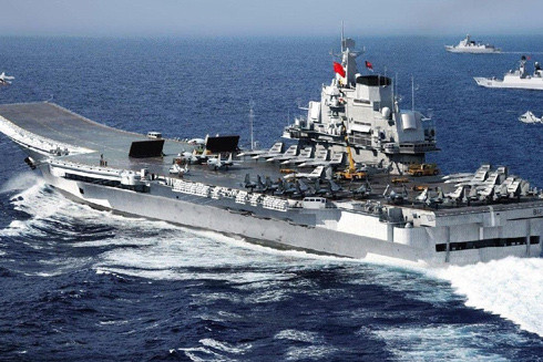 Biên đội tác chiến tàu sân bay Liêu Ninh của Trung Quốc trong cuộc tập trận ở Biển Đông