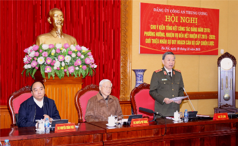 | Hội nghị đã phát huy dân chủ, nêu cao tinh thần trách nhiệm đánh giá, kiểm điểm công tác Đảng năm 2018, nhìn nhận kết quả nửa nhiệm kỳ qua, bàn phương hướng nhiệm vụ, công tác năm 2019 và những năm tiếp theo; bỏ phiếu giới thiệu nhân sự Công an quy hoạch Ban Chấp hành Trung ương nhiệm kỳ 2021 - 2026 với sự thống nhất rất cao. Các đồng chí được giới thiệu nguồn quy hoạch là những cán bộ Công an tiêu biểu, xuất sắc; có phẩm chất, năng lực công tác và uy tín cao; được rèn luyện, thử thách qua thực tiễn công tác, có triển vọng phát triển tốt, bảo đảm đúng tiêu chí, tiêu chuẩn theo quy định, hướng dẫn của Trung ương. |