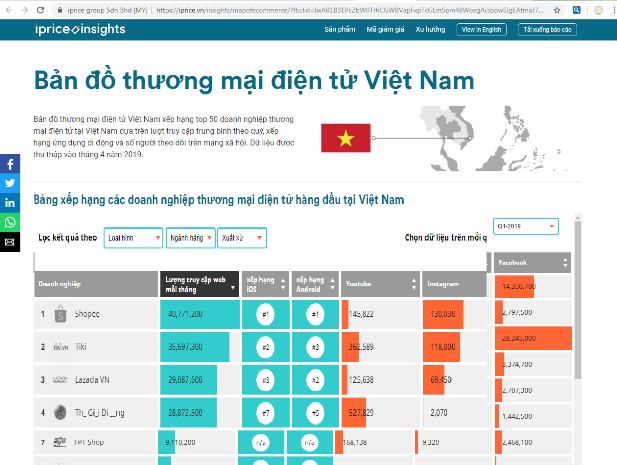 Thứ hạng các website TMĐT Việt Nam theo xếp hạng mới nhất