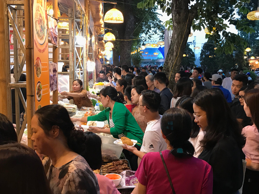 Ở ngày cuối cùng diễn ra Lễ hội văn hóa Ẩm thực Hà Nội (14-10), lượng người đổ về Lễ hội văn hóa Ẩm thực Hà Nội vẫn rất đông. Đặc biệt, tại các gian hàng bán đồ ăn, ai nấy cũng nóng lòng được thưởng thức món ăn đặc trưng của Hà Nội. Với giới trẻ, các món ăn tiện cho việc di chuyển như các món bánh, cốm được đặc biệt yêu thích.