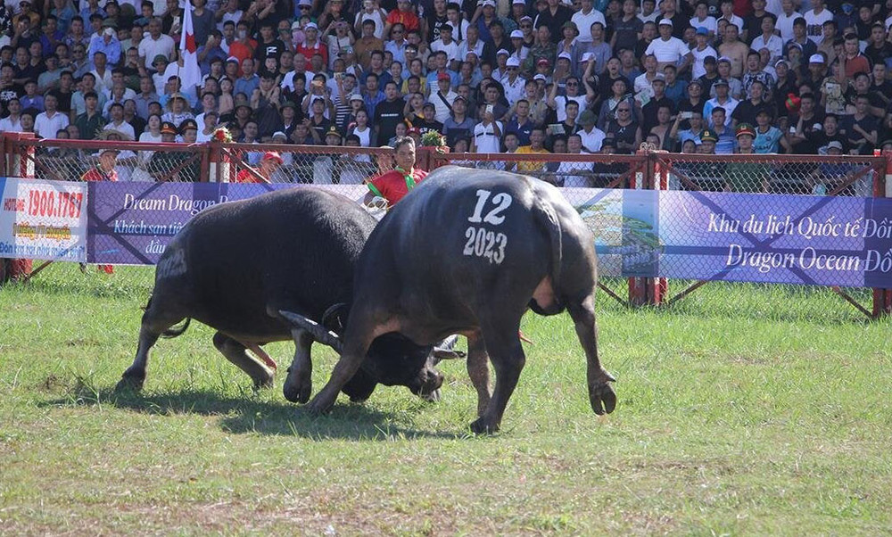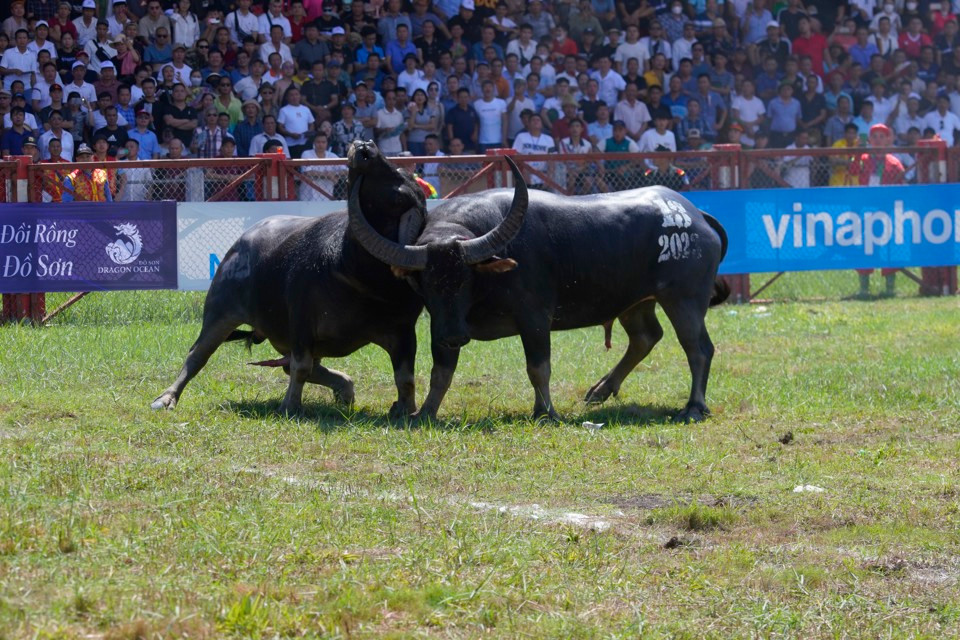 ANTD.VN - Sáng 23/9 lễ hội chọi trâu năm 2023 diễn ra tại sân vận động Đồ Sơn, TP Hải Phòng. Trâu số 03 nặng nhất lịch sử lễ hội đã giành chức vô địch và chủ trâu nhận giải thưởng chung cuộc là 100 triệu đồng.