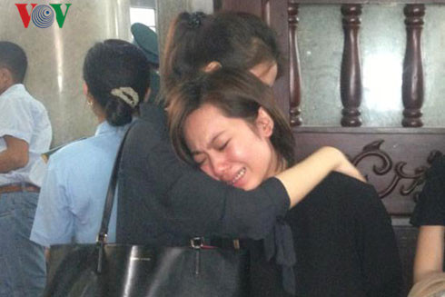 Ngồi ở hàng ghế đầu, ba người phụ nữ gồm mẹ Dương Lê Minh, vợ và em gái khóc hoài không ngớt.
