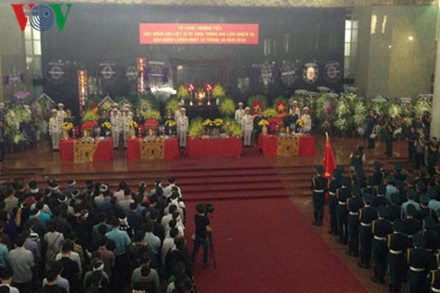 Phó Thủ tướng Trịnh Đình Dũng gửi vòng hoa viếng 3 phi công. Bộ Quốc phòng, Đoàn đại biểu Bộ Tổng tham mưu QĐND Việt Nam, Quân chủng Phòng không - Không quân, Quân chủng Hải Quân, Quân khu 7, Quân đoàn 4, Bộ Tư lệnh Cảnh sát biển Việt Nam, các đơn vị quân đội đóng quân trên địa bàn Quân khu 7..., Thành ủy, HĐND, UBND, UBMTTQ TP Hồ Chí Minh, tỉnh Bà Rịa - Vũng Tàu, các ban, ngành, đoàn thể, nhân dân các địa phương... đã đến viếng và gửi vòng hoa chia buồn với gia đình 3 phi công đã hy sinh.