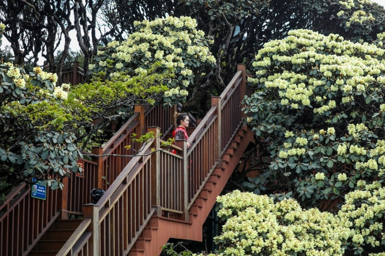 Hiện tại, ngoài sắc đỏ, vàng, hồng, tím kiêu sa của đỗ quyên, Fansipan mùa này còn khoe sắc với hoa mận trắng tinh khôi, hoa rum và mộc lan kiêu sa và những thảm cúc lá nhám đủ loại sắc màu thú vị. Mỗi bước chân trên hành trình chinh phục đỉnh trời đều là một trải nghiệm khó quên, khi du khách được đắm chìm trong thiên nhiên ngoạn mục và không khí trong lành của miền sơn cước.
