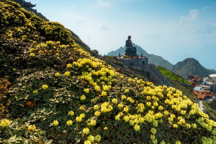 Không chỉ mãn nhãn trước sắc hoa đỗ quyên rực rỡ, du khách lên Fansipan còn có cơ hội khám phá những kỳ quan độc đáo của vũng núi cao đại ngàn. Tại đây, du khách được tham quan Đại tượng Phật A Di Đà – pho tượng Phật bằng đồng ở độ cao cao nhất Việt Nam giữ kỷ lục thế giới, ghé thăm chiêm bái tượng Quan Thế Âm Bồ Tát thanh tịnh giữa mây trời.
