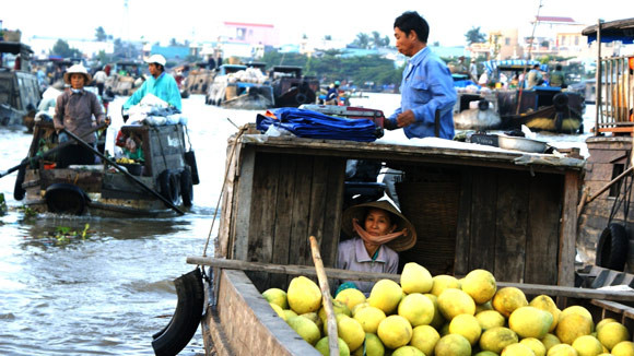 Mặt trời lên cao dần làm dịu đi những cơn gió mang hơi nước và lạnh. Chiếc ghe máy bềnh bồng trên mặt nước, bên rìa sông là những thuyền của những gia đình thương hồ sống với nhiều thế hệ. Vài chậu cây cảnh, phía trong có ban thờ… những chiếc thuyền này như “căn hộ di động” trên sông nước với tiện nghi như tivi, dàn âm thanh, chuồng nuôi súc vật, trên thuyền còn có dựng cả xe máy.