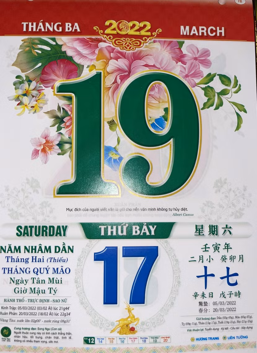 Thứ 7 ngày 19 tháng 3 năm 2022