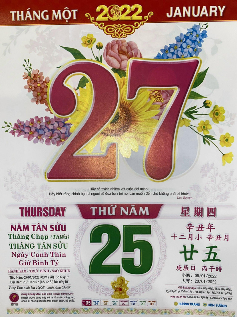 Thứ 5 ngày 27 tháng 1 năm 2022