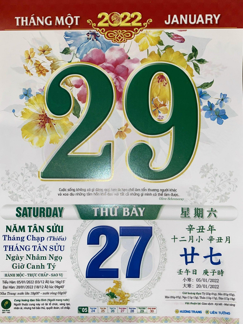 Thứ 7 ngày 29 tháng 1 năm 2022