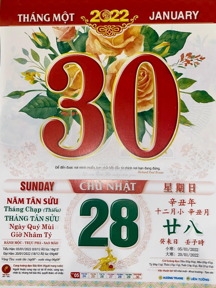 Đại Hàn: 20/01/2022 (018/12 âm lịch) lúc 09h40’