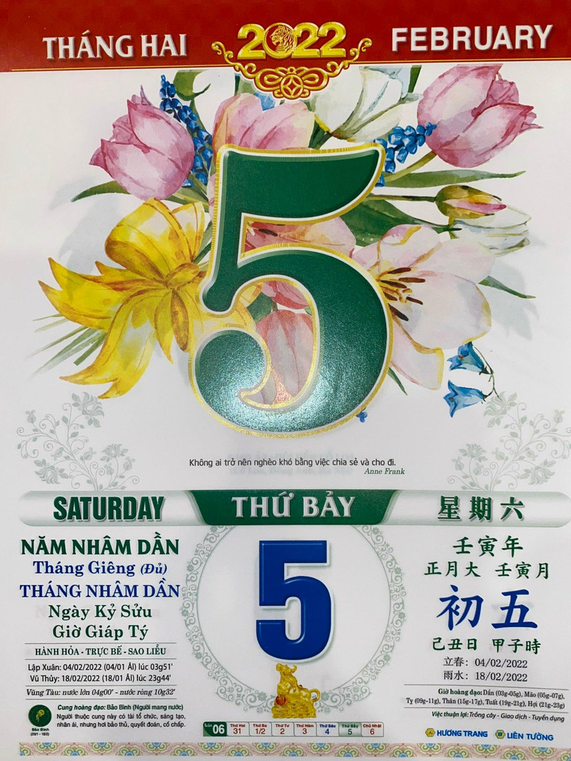 Thứ 7 ngày 5 tháng 2 năm 2022