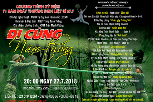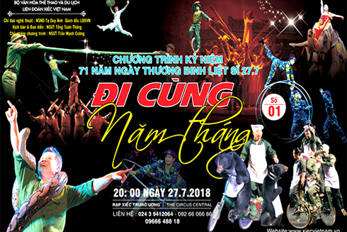 Chương trình xiếc “Đi cùng năm tháng” sẽ diễn ra vào lúc 20 giờ ngày 27-7-2018 tại Rạp Xiếc Trung Ương (số 67-69 Trần Nhân Tông, phường Lê Đại Hành, quận Hai Bà Trưng, Hà Nội).