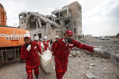 Các nhân viên cứu hộ của Trăng lưỡi liềm đỏ vận chuyển thi thể nạn nhân của cuộc không kích do liên quân Saudi Arabia lãnh đạo vào một nhà tù ở Dhamar, Yemen hôm 1-9-2019 (Ảnh: Reuters)