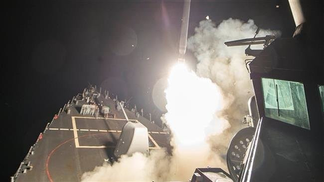 Tàu khu trục tên lửa Hoa Kỳ USS Ross (DDG 71) bắn tên lửa tấn công chống lại Syria vào ngày 7/4/2017.