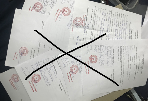 Ngoài ra, Hạ cũng thường xuyên nhận thông tin từ người phụ nữ trên, rồi chuyển cho Thắng làm các giấy xác nhận giả hoặc tự Hạ viết nội dung, ký và dùng dấu giả của Thắng đóng lên các phôi sổ hộ khẩu nhằm sử dụng hoàn thiện hồ sơ cho các khách hàng có nhu cầu vay tín chấp tại các ngân hàng.