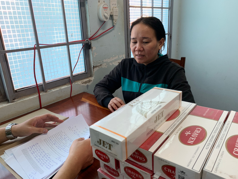 Bùi Thị Thanh Thúy cùng tang vật thuốc lá lậu