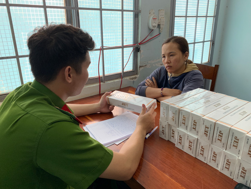 Vào khoảng 8h ngày 18-2, tại khu vực đường Lê Duẩn, phường Ea Tam, TP Buôn Ma Thuột, qua quá trình theo dõi tổ công tác của đội Cảnh sát kinh tế, công an TP Buôn Ma Thuột phát hiện Mai Thị Huyền, trú ở khối 5, phường Khánh Xuân, TP Buôn Ma Thuột, đang có hành vi vận chuyển thuốc lá lậu bằng xe máy, qua kiểm tra phát hiện 500 bao thuốc lá Jet không có hóa đơn chứng minh nguồn gốc. Qua làm việc, Huyền khai nhận mua số thuốc lá trên của một người lạ mặt mang về bán kiếm lời thì bị cơ quan công an phát hiện.
