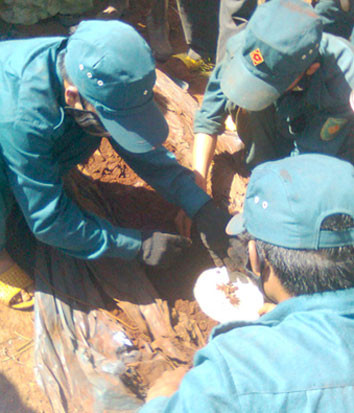 Trước đó, sáng 1-11, trong lúc đào hào trước cổng đơn vị, công nhân của Công ty 72- Binh đoàn 15 đã phát hiện một số tiểu sành chứa hài cốt được xác định là hài cốt liệt sĩ chôn theo hàng dọc.