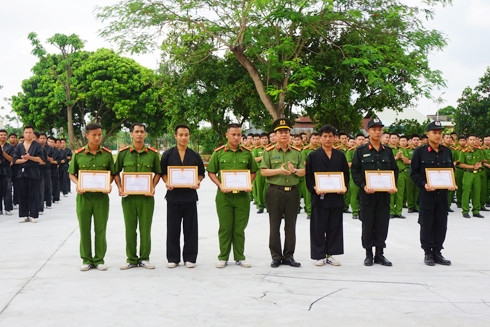 Đại tá Đào Thanh Hải, tặng giấy khen cho CBCS có thành tích học tập, rèn luyện đạt kết quả cao