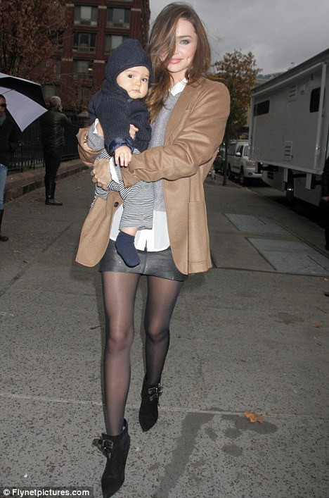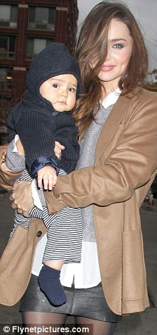 Thời tiết lạnh giá của New York khiến Miranda Kerr luôn ôm chặt cậu con trai bé bỏng của mình. Cậu bé Flynn hiện đã được 7 tháng tuổi, là con trai của Miranda Kerr và nam diễn viên Orlando Bloom. Flynn xuất hiện với mẹ trong bộ quần áo ấm áp với chiếc áo khoác màu xanh hải quân có mũ, chiếc quần sọc và đôi tất ấm áp khi đang đi dạo trên phố Manhattan. Siêu mẫu người Úc 28 tuổi luôn nở nụ cười tươi và lộ rõ má lúm đồng tiền nổi tiếng của mình, bất chấp thời tiết lạnh.