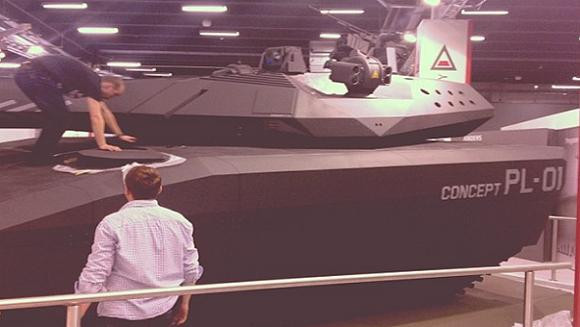 Siêu tăng “tàng hình” PL-01 xuất hiện với mô hình thật tại “Triển lãm công nghiệp quốc phòng quốc tế Kielce”, được tổ chức ngày 3-9-2013.