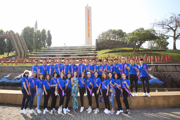 Các thí sinh dâng hương và chụp hình lưu niệm tại Đài tưởng niệm liệt sĩ Vũng Tàu.