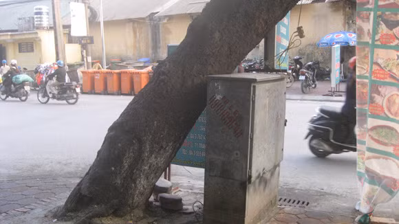 Từ nhiều tháng nay, trước cửa số 22 phố Hòa Mã, phường Phạm Đình Hổ, quận Hai Bà Trưng có một cây đường kính gần bằng vòng tay người ôm đang nghiêng “đè” vào tủ điện hạ thế (ảnh). Ông Nguyễn Ngọc Long, Đội trưởng Đội Quản lý điện số 6-Công ty Điện lực Hai Bà Trưng cho biết, tủ điện hạ thế trên để cung cấp điện cho khoảng 200 hộ dân ở trục phố Hòa Mã và Lò Đúc. Nếu tủ điện bị đè sập, việc cung cấp điện cho người dân sẽ bị ảnh hưởng. “Tối 8-12, tôi đã đi kiểm tra thực trạng và rất lo cho tủ điện hạ thế. Dường như mỗi ngày nó lại nghiêng, đè nặng thêm vào tủ điện”, ông Long bày tỏ. Cũng theo ông Long, vì lưới điện ở khu vực này đã được hạ ngầm, nên nếu xảy ra sự cố, việc khắc phục sẽ khó khăn hơn so với công trình lưới điện nổi. Hơn nữa, thiết bị và tủ điện đòi hỏi sự tương thích, không dễ để mua và thay thế ngay khi sự cố xảy ra.