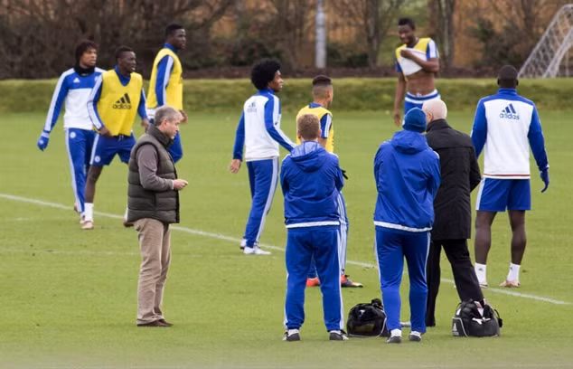 Cầu thủ của Chelsea trở lại tập luyện theo thường lệ vào sáng nay và Abramovich xuất hiện sau đó không lâu, xem các ngôi sao tập luyện trước lúc nói chuyện với đội bóng.