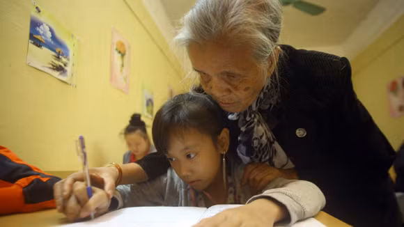 (Bà giáo Hồ Hương Nam, 81 tuổi, 16 năm dạy trẻ khuyết tật trong trường THCS An Dương, Tây Hồ)