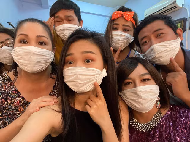 NSND Hồng Vân chia sẻ hình ảnh "khẩu trang tự chế" của các diễn viên sân khấu.