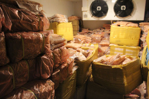 Các cán bộ tham gia đoàn kiểm tra đều lắc đầu ngao ngán khi chứng kiến hàng tải sụn gà, sụn lợn, chất đống trong kho lạnh này. Thế nhưng thật đáng lo ngại, qua khảo sát “thị trường ẩm thực”, đây lại là những loại thực phẩm được tiêu thụ rất phổ biến tại các quán nhậu, nhà hàng, quán nướng.
