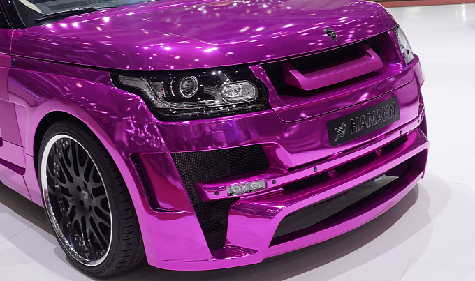 Hãng độ xe Hamann đến từ nước Đức đã bắt kịp những xu hướng mới nhất để áp dụng cho chiếc xe Range Rover. Chiếc xe được mạ một lớp crôm sáng loáng – chất liệu đang làm “điên đảo” giới độ xe hiện nay. Hamann chọn cho sản phẩm của mình một sắc màu hồng tím vô cùng rực rỡ, khiến chiếc xe trông giống như một phương tiện du hành vũ trụ mang thông điệp của tình yêu và hoà bình.