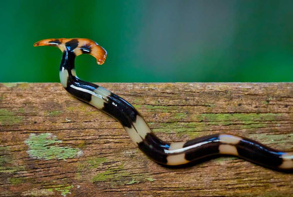 ANTD.VN - Giun đầu búa là loại cực độc, có nhiều màu sắc, đầu giun dẹp có hình nấm. Nó tiết ra chất Tetrodotoxin, chất độc thần kinh gây suy nhược tương tự được tìm thấy trong cá nóc.
