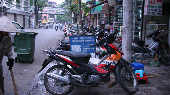 Hay trên phố Hàng Lược, dù là phố cấm đỗ xe nhưng ô tô đỗ hàng dài trên đường giữa ban ngày, khiến cho tuyến đường vốn đã chật hẹp nay càng hẹp hơn gây khó khăn cho người tham gia giao thông. Không chỉ dừng đỗ xe dưới vỉa hè, tuyến phố này còn bị người dân chiếm dụng để xe máy, thậm chí trước trạm tin phường Hàng Mã cũng bị xe máy đỗ kín, khiến người đi bộ buộc lòng phải đi xuống lòng đường. Tại phố Hàng Bông, Lương Văn Can, Hàng Lược… cũng tương tự. Đáng nói, những vi phạm trên diễn ra cả ngày lẫn đêm nhưng lại không bị xử lý hay dẹp bỏ?