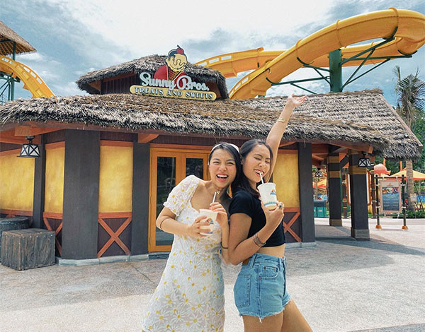 Và sau khi chơi đã, chụp mệt, nhớ đừng quên nghỉ chân bên những chòi nhỏ và thưởng thức ly nước mát lạnh, ngon mê ly từ những quầy bán đồ uống nhỏ xinh có thể dễ dàng bắt gặp tại mọi nơi trong công viên nước.
