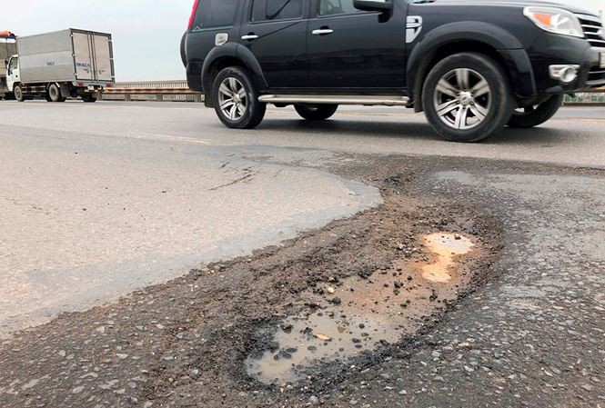 Mặt cầu Thăng Long lại đang bị hư hỏng, lún, nứt bong tróc nghiêm trọng