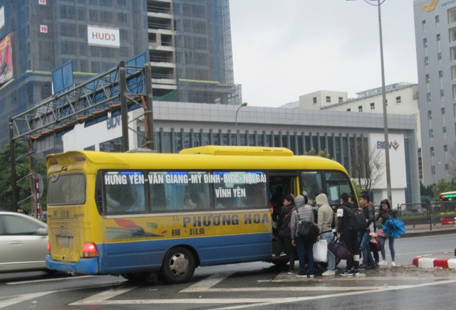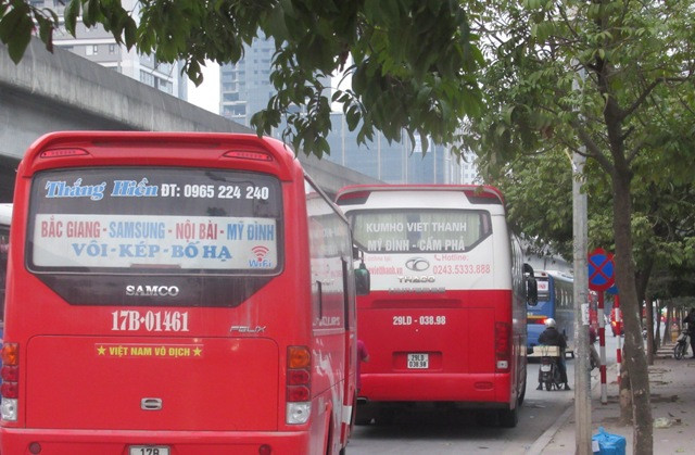Như xe khách chạy tuyến Hưng Yên- Vĩnh Phúc nhưng vẫn “tạt” qua Mỹ Đình, Hà Nội để đón khách, nhận hàng hóa; xe khách chạy tuyến Nam Định đi Lào Cai nhưng vẫn dừng đón/trả khách nhộn nhịp trên tuyến Phạm Hùng, Phạm Văn Đồng; xe chạy tuyến Thái Bình-Bắc Giang cũng rầm rộ đón khách trên cung đường “nóng” Phạm Hùng, Phạm Văn Đồng…