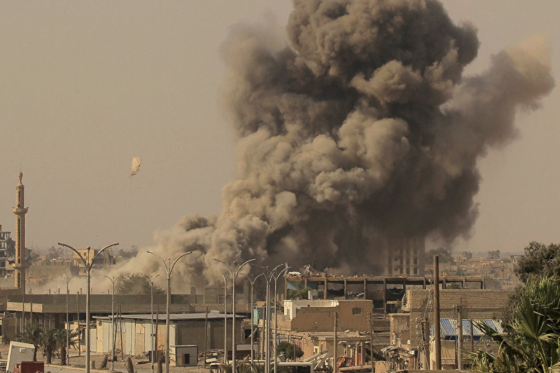 Khói đen bốc lên sau cuộc giao tranh giữa SDF và IS ở Raqqa