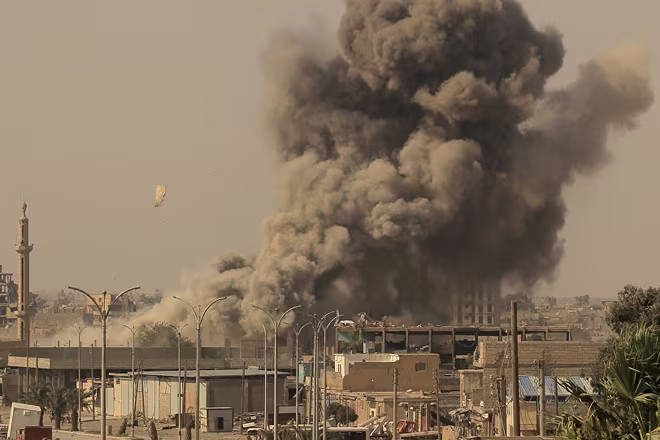 Thành phố Raqqa bị lực lượng đối lập Syria chiếm giữ vào năm 2013, sau đó thì rơi vào tay IS. Năm 2016, SDF, với sự hậu thuẫn của liên minh quân sự do Mỹ đứng đầu, đã mở chiến dịch giải phóng thành phố và giành quyền kiểm soát Raqqa vào năm 2017.