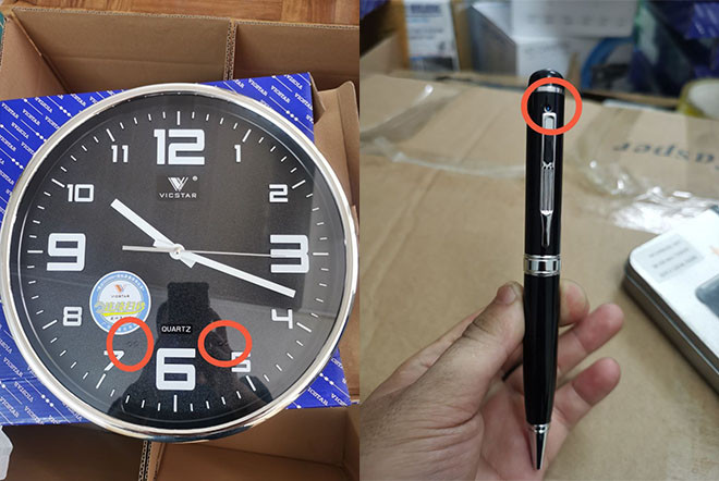 Quá trình kiểm tra, lực lượng chức năng phát hiện 151 bộ thiết bị các loại gồm 17 chiếc đồng hồ Vicstar có chức năng nghe lén và ghi âm, được bán với giá 2,5 triệu đồng/ chiếc; 40 chiếc Camera siêu nhỏ AHD, bán với giá 1,5 triệu đồng/chiếc; 21 chiếc điện thoại Vinpro, được bán với giá 1,1 triệu đồng/ chiếc; 23 cục sạc được bán với giá 1,1 triệu đồng/chiếc; 25 chiếc sạc dự phòng có chức năng quay lén, được bán với giá 2 triệu đồng/chiếc; 10 chiếc bút ghi âm, ghi hình, được bán với giá 1 triệu đồng/chiếc.... Tổng số thiết bị trị giá trên 230 triệu đồng.