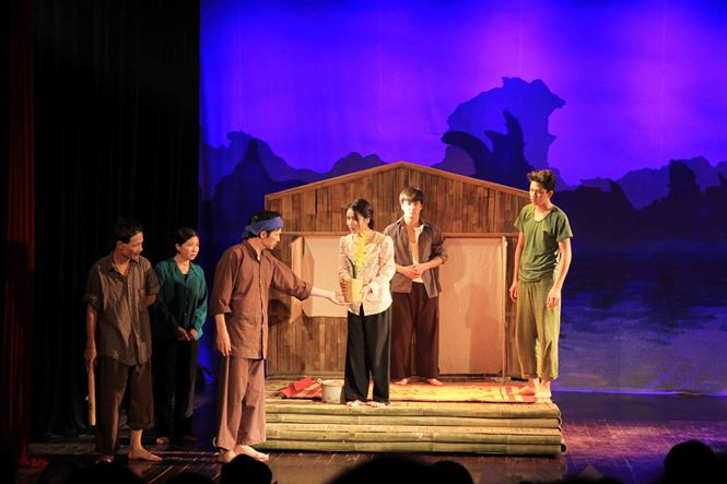 Nhưng khi dàn dựng, đạo diễn trẻ Lâm Tùng đã làm tươi mới kịch bản. Anh sử dụng sân khấu tối giản. Mọi câu chuyện và diễn biến xoay quanh chiếc bè mảng, sau này có thể biến hóa thành căn nhà của Thao - người yêu của cô con gái út Giang.