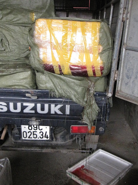 Khoảng 2h ngày 6/1, lực lượng liên ngành gồm Đội 2, Phòng 6, Cục Cảnh sát môi trường, Bộ Công an phối hợp với Đội QLTT số 4, Chi cục QLTT Hà Nội tiến hành kiểm tra xe ô tô tải mang BKS 89C – 02534 ,đã phát hiện số lượng lớn nội tạng gia súc, gia cầm đang bốc mùi hôi thối.
