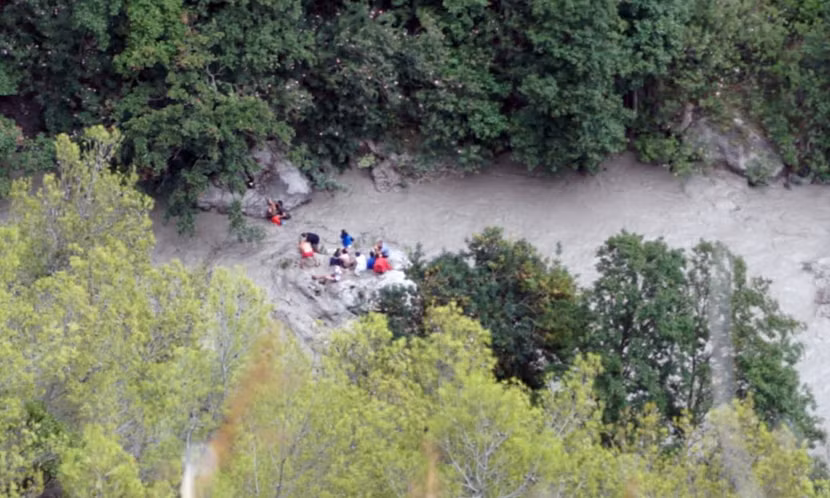 Lực lượng cứu hộ đang đưa người thoát ra khỏi hẻm núi