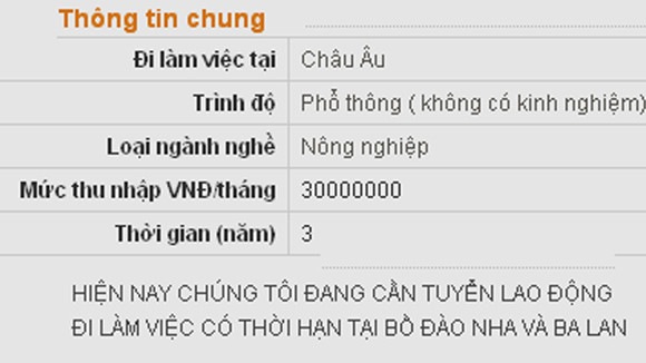 Đây là các hành vi tuyển chọn lao động đi làm việc ở nước ngoài trái pháp luật. Cục Quản lý lao động ngoài nước - Bộ LĐ-TB&XH cảnh báo người lao động khi nhận được thông tin tuyển chọn hoặc có nhu cầu đi làm việc ở nước ngoài có thể liên hệ với Cục này theo số điện thoại 043.8249517, Trung tâm Lao động ngoài nước theo số máy 043.7346093 - 97; Sở LĐ-TB&XH địa phương; Trung tâm giới thiệu việc làm địa phương… để biết thông tin chi tiết, tránh bị các tổ chức, cá nhân lợi dụng, lừa đảo.