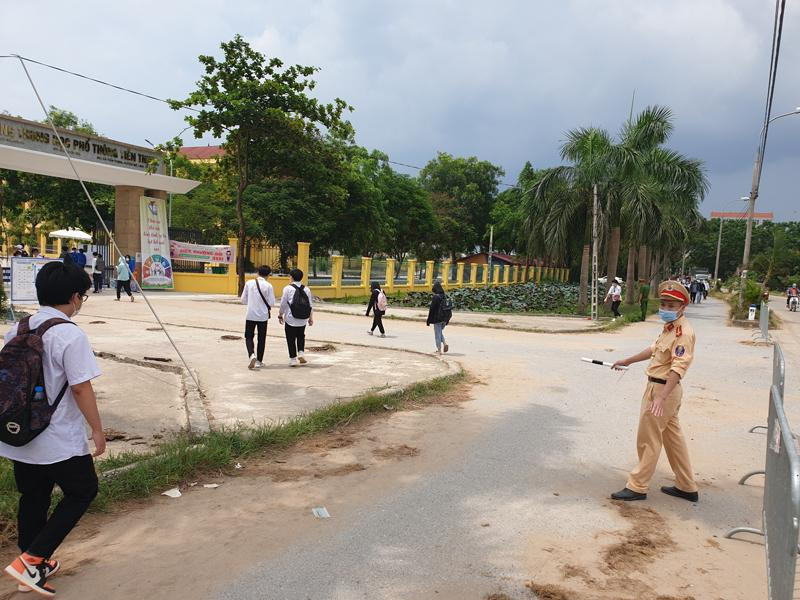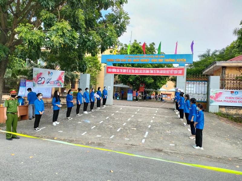 ANTD.VN - Cùng với các địa bàn trong thành phố Hà Nội, các điểm thi tốt nghiệp THPT ở huyện Mê Linh đã được lực lượng Công an huyện bảo vệ chặt chẽ. Ngoài việc kiểm soát đảm bảo ANTT điểm thi, lực lượng Công an huyện còn phối hợp kiểm soát chặt chẽ công tác phòng chống Covid-19, đảm bảo an toàn sức khỏe cho thí sinh và phụ huynh học sinh. Hình ảnh ghi nhận tại các điểm thi ở địa bàn huyện Mê Linh trong ngày 7-7...