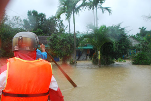 Cho đến sáng 16-12, nước các con sông ở Quảng Ngãi lên cao nhấn chìm, cô lập hàng trăm khu dân cư. Lực lượng Công an các huyện đã túc trực tại điểm xung yếu phối hơp với lực lượng xã bố trí các xuồng sơ tán người và tài sản tại vùng bị ngặp nặng lên nơi cao ráo.
