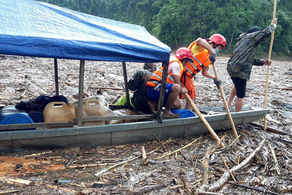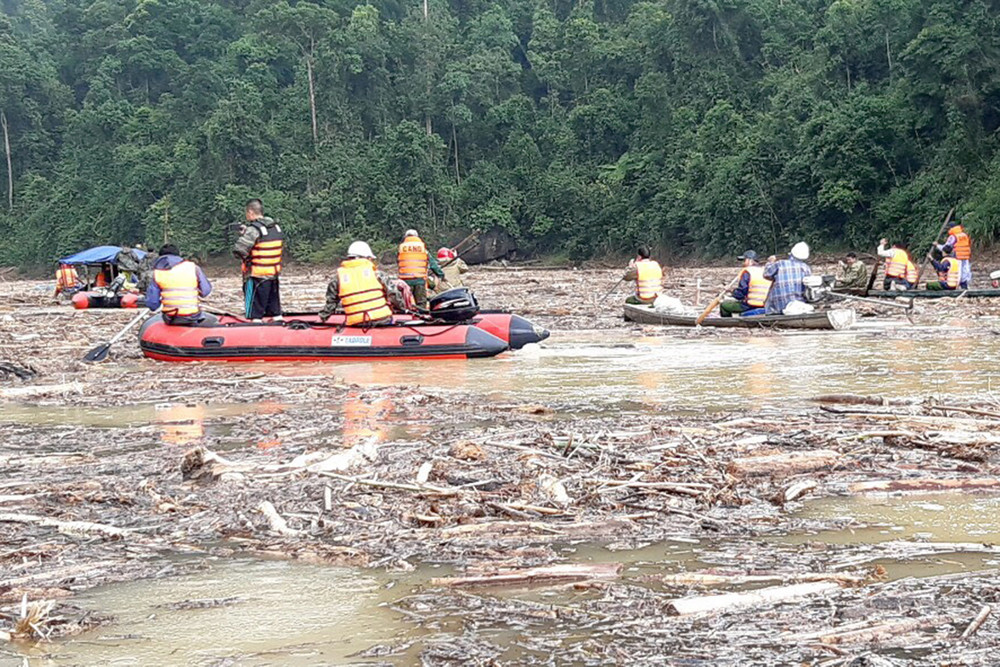ANTD.VN - Gần 100 cán bộ chiến sĩ thuộc công an huyện Nam Trà My, Bắc Trà My và Cảnh sát PCCC & CNCH CAT Quảng Nam đã dùng thuyền để tổ chức tìm kiếm các nạn nhân mất tích trên khu vực sông Leng và lòng hồ Sông Tranh do sạt lở núi tại thôn 1 xã Trà Leng (huyện Nam Trà My, Quảng Nam) trong nhiều ngày qua.