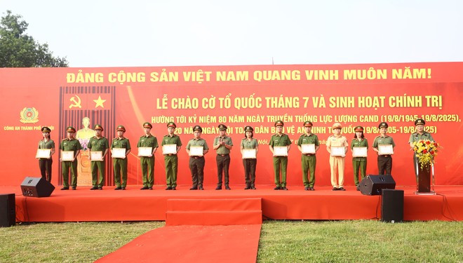 | Trung tướng Nguyễn Thanh Tùng, Giám đốc CATP Hà Nội trao Bằng khen của UBND thành phố Hà Nội cho các tập thể và cá nhân có thành tích xuất sắc |
